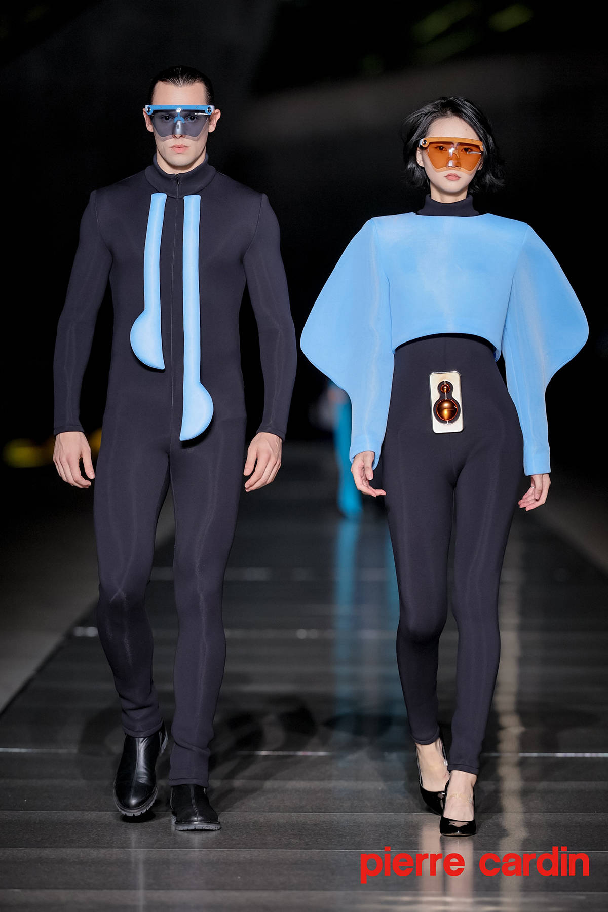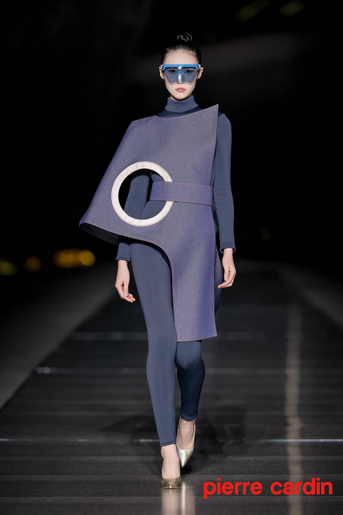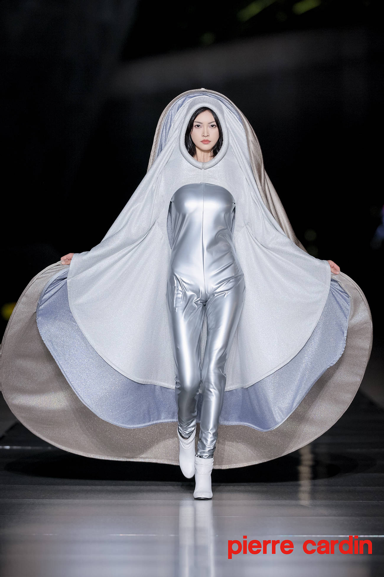 本次发布会摒弃传统封闭空间,特选位于大剧院二层的开放式空中艺阁进行展示。银光T台上,几十位中外名模特串联起一首流动编年史,将皮尔卡丹的经典设计美学生动展现人前。极具科幻气质的高级成衣经由悬浮多面建筑体的衬托,更显异世孤傲的氛围感。