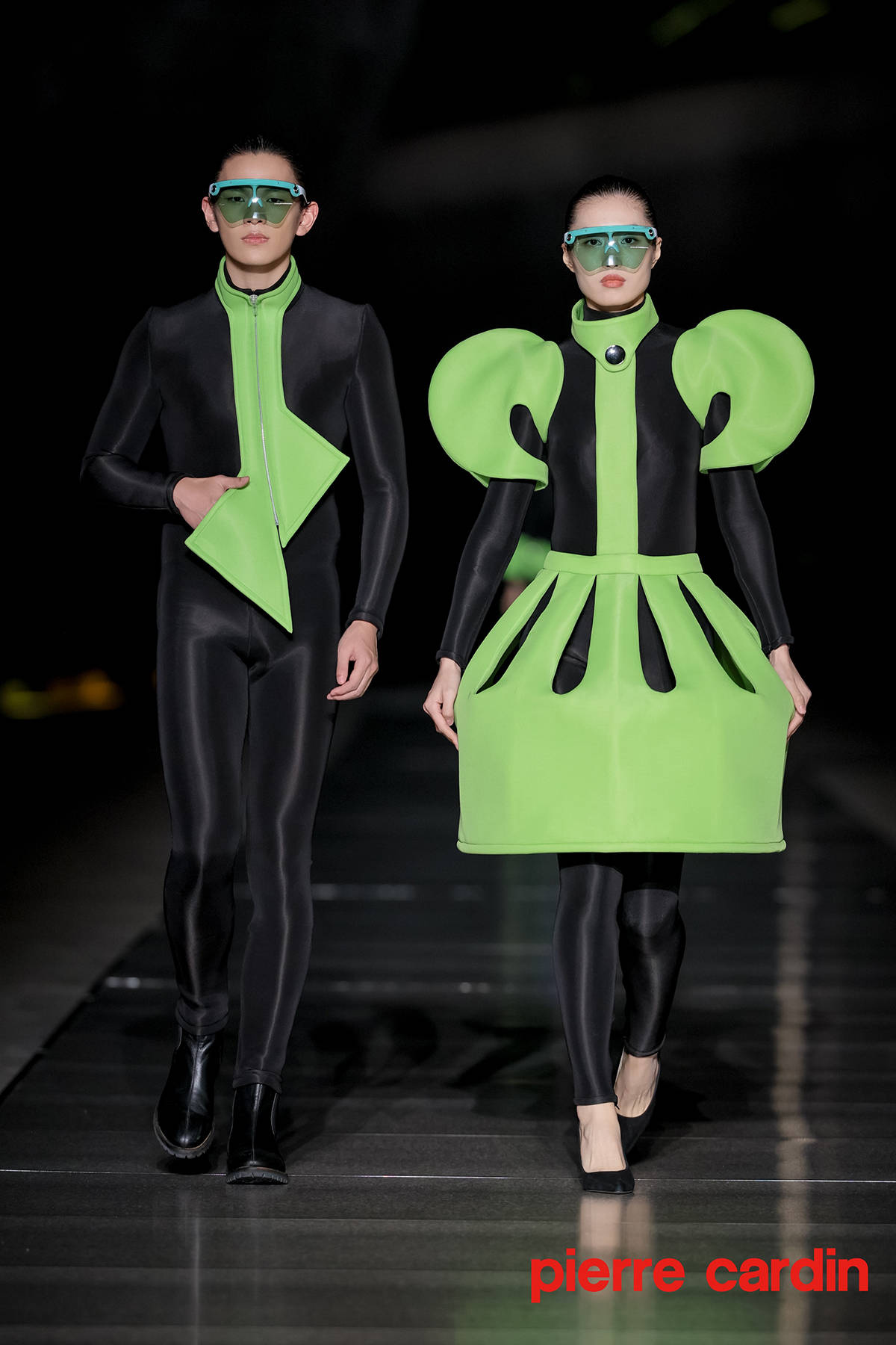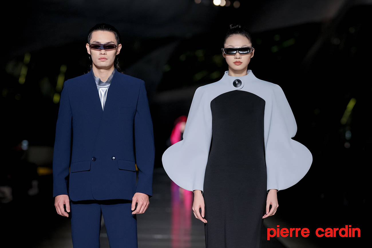 极简A字连衣裙、干练博莱罗夹克与无领绅士西装外套等皮尔卡丹经典款式,于线条与细节处摩登焕新;几何嵌花、建筑廓形与金属饰面等皮尔卡丹标志元素,在风格反差中契合剪裁,重塑形态之美。